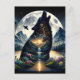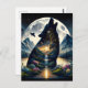 Cartão Postal Mystical Wolf Howling no Moon Surreal