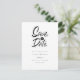 Esse minimalista preto e branco para salvar a placa de data apresenta um na moda gravado com gravação da data acima de seus detalhes definidos em texto elegante.