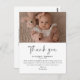 Expresse a sua sincera gratidão com este obrigado de chá de fraldas - o cartão postal, a maneira perfeita de obrigado dos seus entes queridos pela sua bondade e presença na sua celebração. Esta carta maravilhosamente projetada apresenta uma foto precioso do seu recém-nascido na metade superior, enquanto a parte inferior mostra uma mensagem pensativa de obrigado-você, destacada por "Obrigado" em um roteiro sofisticado e elegante. Personalize facilmente o texto e a imagem clicando no botão "Personalizar" para adicionar sua própria mensagem e foto do bebê. Mantenha-se fiel aos seus amigos e família.