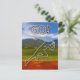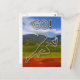 Apresentando um cenário de trilha vermelha correndo contra um pano de fundo de colinas verdes sob céus azuis. Há um esboço de um homem correndo e a palavra "Vai!".