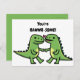 O cartão de saudação dos namorados do Dinossauro apresenta um casal dino verde apaixonado pela frase Você é devagar