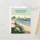 Cartão Postal Nantucket Beach Hydrangeas Boat Retro
