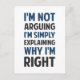 Eu não estou discutindo... Estou apenas explicando por que estou certo! Perfeito para aquelas ocasiões em que sua explicação racional está sendo mal interpretada como argumentativa. O que é provavelmente o tempo todo.