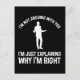 Eu não estou discutindo com você - Estou apenas explicando por que estou certo. Esta citação engraçada, acessório sarcástico, faz um presente excelente de mordaça para homens arrogantes, mulheres, adolescentes e crianças que adoram discutir e explicar por que você está errado. Se você frequentemente se encontra entrando em uma discussão com pessoas e tem que dizer a eles por que eles estão errados, e você ama sarcasmo e humor, esta engraçada design de piada é para você!