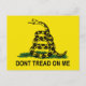 A bandeira Gadsden é uma bandeira histórica americana com um campo amarelo que representa uma cascavel em espiral e pronta para atacar. Posicionado abaixo do cobra é a legenda "Não toque em mim"[sic]. A bandeira foi desenhada por Christopher Gadsden e é nomeada por um general americano e estadista. (-Wikipedia) Aqui está disponível em t-shirts, camisas, botões, cartões, artigos de presente.