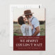 Um anúncio de casamento em tempo hábil que mostrava que simplesmente não podíamos esperar o título. Uma maneira excelente de deixar os entes queridos saberem que você amarrou o nó. O backside permite uma mensagem personalizada para amigos e familiares ou pode ser removido se desejar.