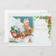 UM NATAL FANTÁSTICO PARA VOCÊ Papais noeis revestidos de azul voam puxados por uma rena através do telhado de neve, sino e holly superior direita.