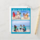 A foto personalizável da família de praia azul-chic colage cartões postais de Natal com suas fotos tropicais favoritas ao sol. Adicione 3 das suas memórias favoritas das suas férias na ilha à costa. Belos cartões postais de feriado costeiro com um layout de fotografia limpo e moderno e bonito roteiro azul.