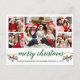 O Cartão Postal de Natal Merry - Colagem Fotográfica da Família Fotográfica do Script de Caligrafia Moderno 5 - inclui Watercolor Christmas Holly Berries - Script Verde