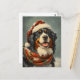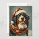 Celebre a época festiva com desejos calorosos e um toque de charme canino. Este cartão de Natal apresenta uma ilustração carinhosa de um Cão de Montanha Bernês, adornada com um arco festivo, aninhado em meio a uma cena de inverno nevado. A expressão gentil do cão captura a essência empolgante das férias, fazer-a uma saudação encantadora para amigos e familiares. Compartilhe a alegria da temporada com esta carta adorável, onde o espírito do Natal e a companhia de um amigo peludo se juntam em perfeita harmonia.