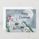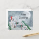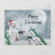 White Poodle em uma bengala de neve e decoração vestindo um cachorro de chapéu vermelho de Papai Noel ama cartão de Natal
