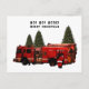 Cartões de Natal do bombeiro com o Papai Noel entregando presentes fora de um caminhão de bombeiros e citação engraçada.