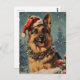 Este cartão de Natal encantador apresenta uma ilustração encantadora de um German shepherd, adornada com uma coroa festiva ao redor do pescoço. O leal e festivo companheiro canino adiciona um toque de calor à estação, incorporando o espírito de alegria e companhia. Compartilhe o amor e a alegria das festas com este charmoso cartão, perfeito para enviar desejos calorosos a amigos e familiares.