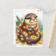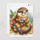 Uma lontra adorável embrulhada em luzes de Natal, a aquarela IA gerou arte