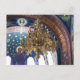 Foto por Zolotareva. Natal ortodoxo.A rica decoração da Catedral Ortodoxa. Belo Lustre na Catedral de Panteleimon sobre o fundo de afrescos. Lustre ornamental numa Igreja Ortodoxa.