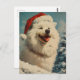 Desejando-lhe uma estação festiva penosa! Este cartão de Natal apresenta um adorável Samoyed fazendo um chapéu de Papai Noel, espalhando alegria com seu charme fofo. A imagem caprichosa captura o espírito das festas, o calor promissor e a alegria. Envie aos seus entes queridos uma dose de felicidade de férias com este cartão de emocionante, como o Samoyed traz um toque de magia canina aos seus desejos de Natal.