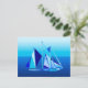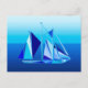 Cartão Postal Nave de vela geométrica moderna / Iate, Azul Cobal