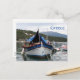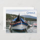 Um cartão postal da Grécia, de um típico barco de pesca grego ancorado no porto da ilha de Meganissi.