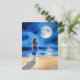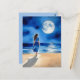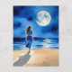 Cartão-postal em uma ilustração de um veleiro flutuando pacificamente em um mar calmo e iluminado, cercado por um céu noturno estrelado. A lua de cheio lança uma reflexão suave sobre a água, criando uma cena serena e tranquila.
