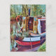 Uma design de arte bonito de um barco estreito ancorado em uma parte pacífica do canal.