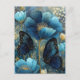 Cartão Postal Navy Blue and Gold Butterfly with Teal Flower