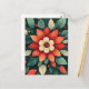 Os florais vermelhos escarlatados são organizados em clusters geométricos nítidos sobre um fundo de jade esmagadora, combinando contraste agudo com forma orgânica.