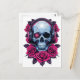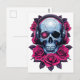 Cartão Postal Neon Cyber Death Skull e Rosa White