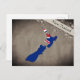 Postkarte mit einem Umriss von Neuseeland, gefärbt em den Farben der Nationalflagge. Auf der "Best in Viagem 2018"-Liste von Solitário Planet liegt Neuseeland auf Platz 5.