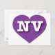 Este cartão-postal apresenta um coração roxo vibrante contendo as letras maiúsculas, brancas e em negrito NV, a abreviação oficial para Nevada, o estado prateado. O reverso do cartão postal é vazio, aguardando seu texto personalizado ou sentimentos escritos à mão.