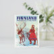 Cartão Postal Neve finlandesa, mulher esquiando com veado, vinta