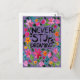 Watercolor Floral Quote: Never Stop Dreaming. Colorful florals and a purple background.