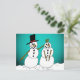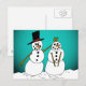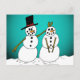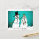 Um casal de neve bem posicionado enfeite a frente deste cartão de posto básico
