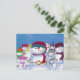 Este cartão-postal adorável apresenta bonitinhos, bonitinhos, bonitinhos, bonitos bonitos bonitinhos, friolando juntos vestindo chapéus e cachecóis coloridos e criativos. É o cartão postal perfeito para mandar alguém que ama homens de neve. A design é baseada em uma peça de arte original por © One Artsy Momma.