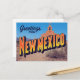 This striking, retro-style design features the iconic "Greetings from NEW MEXICO" typography set against a traditional desert landscape. The background prominently features a historic adobe mission or church, reflecting the state's deep cultural and architectural heritage, typical of the Santa Fe and Pueblo regions. Perfect for fans of vintage travel posters, retro artwork, Southwest history, and the unique beauty of the Land of Enchantment. This makes an ideal souvenir or gift for travelers and locals.