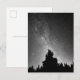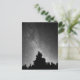 Esta foto em preto e branco apresenta um céu noturno sobre a floresta.