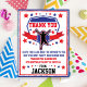 Um design de cartão de agradecimento fofo para a próxima festa de aniversário temática Ninja Warrior do seu filho.