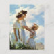 Um cartão-postal de arte com a pintura de Charles Courtney Curran (1861-1942), On the Cliff (1910). Ele era um pintor impressionista americano. Duas mulheres e uma jovem, todas vestidas de branco, ficam em um penhasco em um dia bonito, cercadas por um brilhante céu azul adornado com nuvens brancas lisas.
