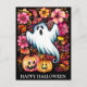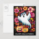 Cartão Postal Noite Assustadora de Halloween com Bruxa