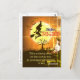 Noite de Dia das Bruxas Escuras com lua de cheio, silhueta de bruxas voadora com morcegos, cova assustadora com gatos e ratos pretos, corvo no topo e árvore morto à distância. Uma citação do Dia das Bruxas: "Quando as bruxas andam, e os gatos pretos são vistos, a lua ri e sussurra, 'está perto do Dia das Bruxas' Personalize mudando a citação com seu próprio texto e acrescentando seus detalhes.