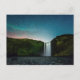 Esta foto apresenta um belo Skógafoss à noite com estrelas e luzes nortes.
