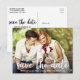 Salve A Data Do Cartão-Postal De Foto Do Casal Moderno Do Noivado - Script Branco