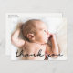 Personalizou este cartão postal de anúncio de bebê com fotos de bebê na frente com um moderno "obrigado você". E incluir a data de nascimento do bebê, o nome do cheio e a mensagem especial no verso. Tipografia moderna e design. Personalize o campo de endereço de devolução e a mensagem do obrigado. Seja fácil e atencioso enviar seu anúncio de nascimento de bebê para a família e amigos. Deixem-nos partilhar a alegria. Parabéns sobre o nascimento do seu filho!