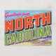 Celebrate the "First in Flight" State with this bright, retro "Greetings from North Carolina" postcard. This vintage large-letter design features a classic biplane on a sandy beach, paying homage to the Wright Brothers' historic achievement at Kitty Hawk. The vibrant, bold colors and vintage style make it a fantastic souvenir for North Carolina residents, history buffs, aviation enthusiasts, beach lovers, and collectors of Americana travel art. A unique way to send greetings or display nostalgia.