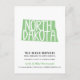Compartilhe seu novo endereço residencial com amigos e familiares com anúncios em movimento, apresentando um mapa da silhueta do estado de DAKOTA do NORTE com tipografia moderna. Use os campos fornecidos para sua introdução personalizada, nome da família e novo endereço. . Adicione uma mensagem personalizada no verso. NORTH DAKOTA - A cor verde do mapa é completamente variável!!