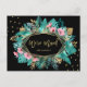 Estes cartões postais de anúncio comoventes tropicais modernos apresentam uma falso estrutura geométrica dourada com uma variedade de folhas de aparência metálica em ouro e verde, e bonito flores tropicais cor-de-rosa em fundo preto. O moderno guião manuscrito em dourado falso diz "Movimentámo-nos", e há mais tipografia de ouro e folhas coloridas nas costas, com bastante espaço para as vossas informações sobre a vossa nova casa.