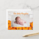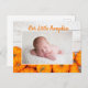 Este novo e belo cartão-postal de Ação de Graças apresenta uma fotografia do seu doce novo bebê sob as palavras Our Little Pumpkin em laranja. Esta bonito fotografia de outono com madeira branca tendenciosa atrás do recheio de abóboras é um elegante cartão postal de anúncio de nascimento para o Dia das Bruxas ou Ação de Graças.