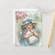 Vintage trabalho de arte com uma garotinha segurando seu gatinho vestido