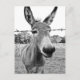Foto em preto e branco de um curioso burro