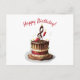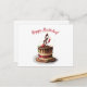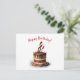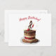 Este cartão postal apresenta uma ilustração de um bolo de aniversário de morango de chocolate com uma forma de chef de clave de sol no topo. Este é um cartão de aniversário perfeito para compositores, compositores de músicas, músicos e mentes musicais.