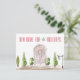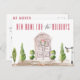 Nova Casa Para Os Feriados. Porta, coroa, arco, árvores e candeeiro de rua, cartaz de anúncio em movimento. A placa apresenta várias linhas de texto de modelo para seu novo endereço e mensagem de feriado.